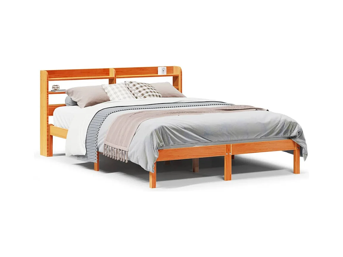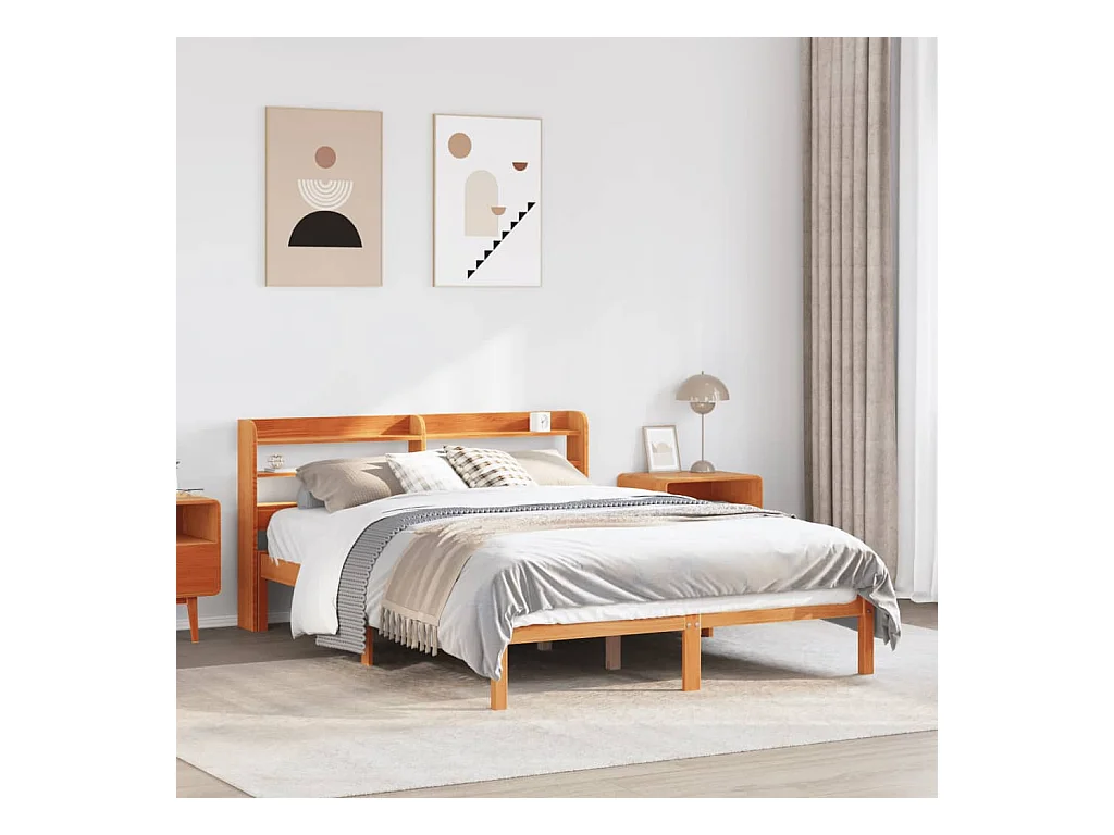 Cadre de lit et tête de lit sans matelas cire marron 140x190 cm