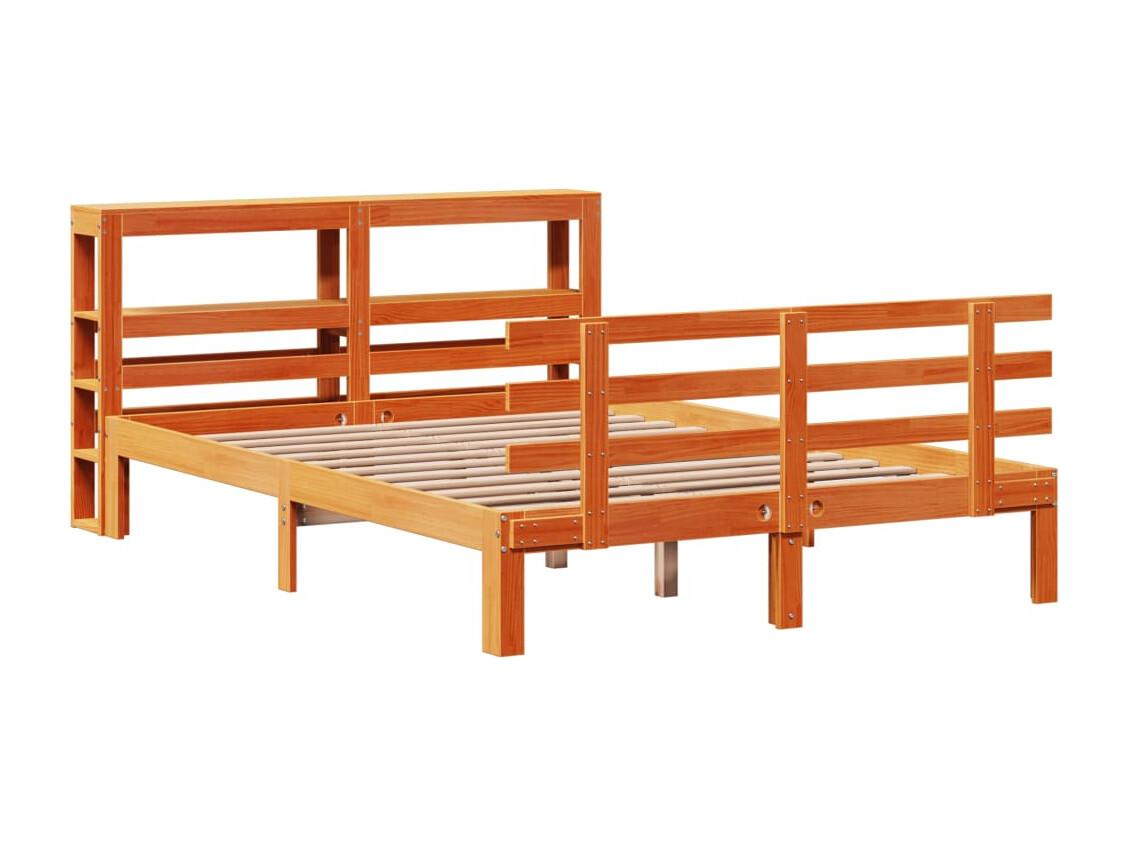 Lit bibliothèque sans matelas cire marron 150x200 cm pin massif