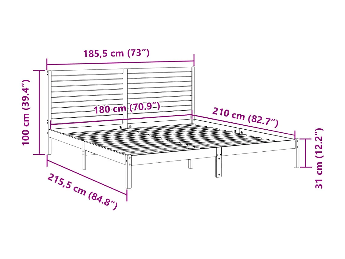 Cadre de lit extra long sans matelas 180x210 cm bois massif