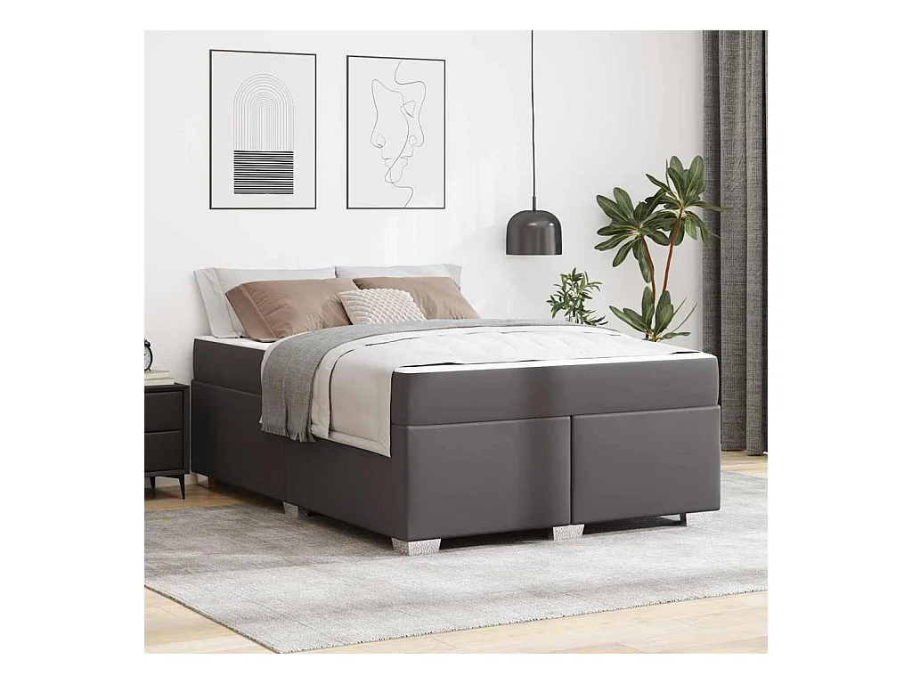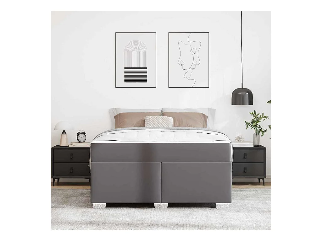 Cadre de lit avec matelas Gris 140 x 200 cm Faux cuir