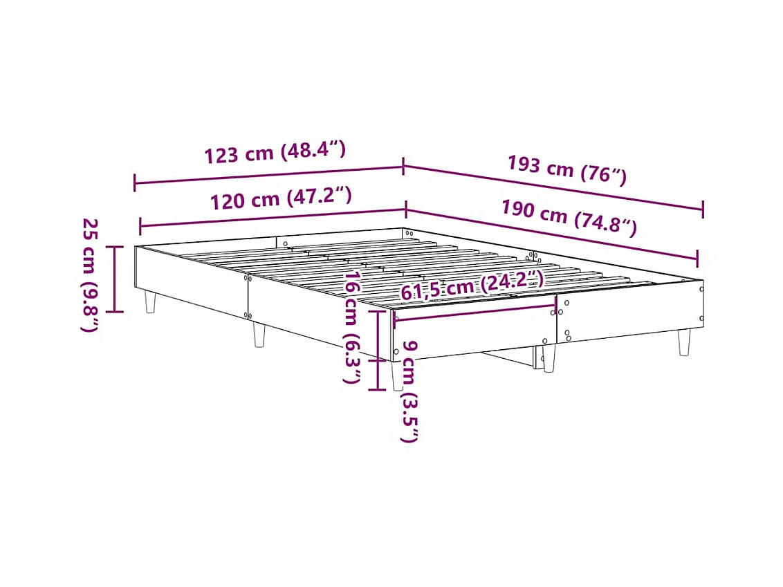 Cadre de lit Gris béton 120 x 190 cm Bois d'ingénierie