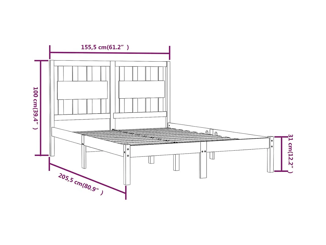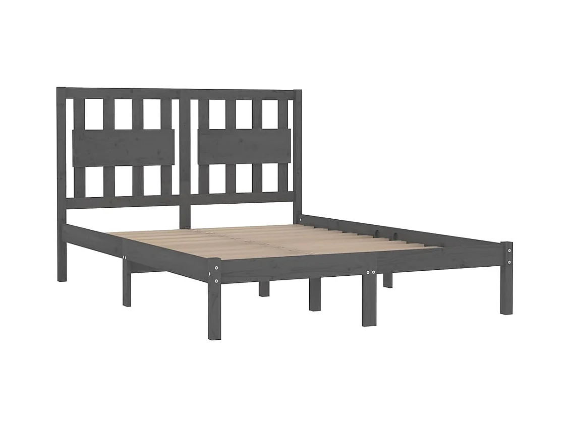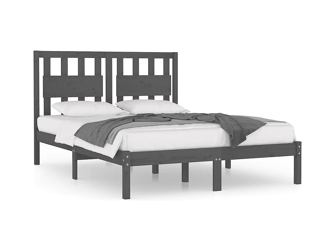 Cadre de lit sans matelas gris bois de pin massif