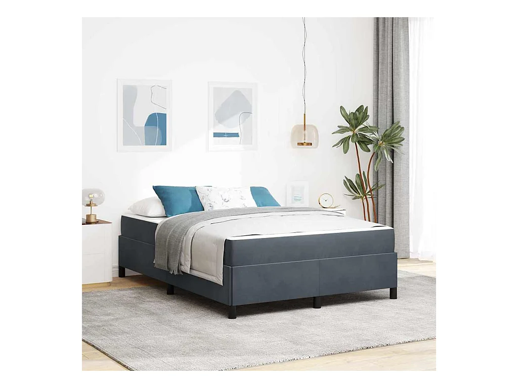 Cadre de lit Gris foncé, gris et blanc 140 x 200 cm Velours