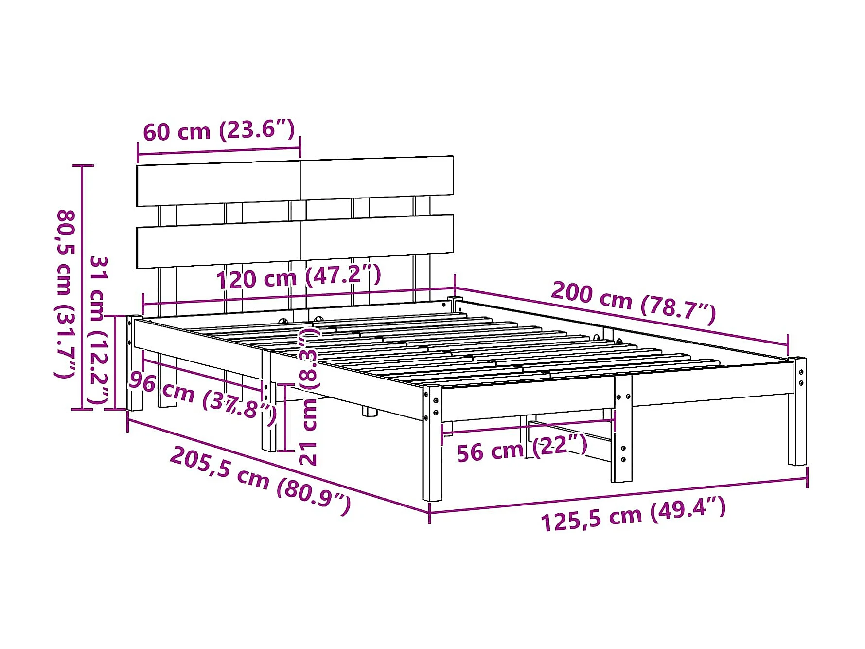 Cadre de lit sans matelas 120x200 cm bois de pin massif
