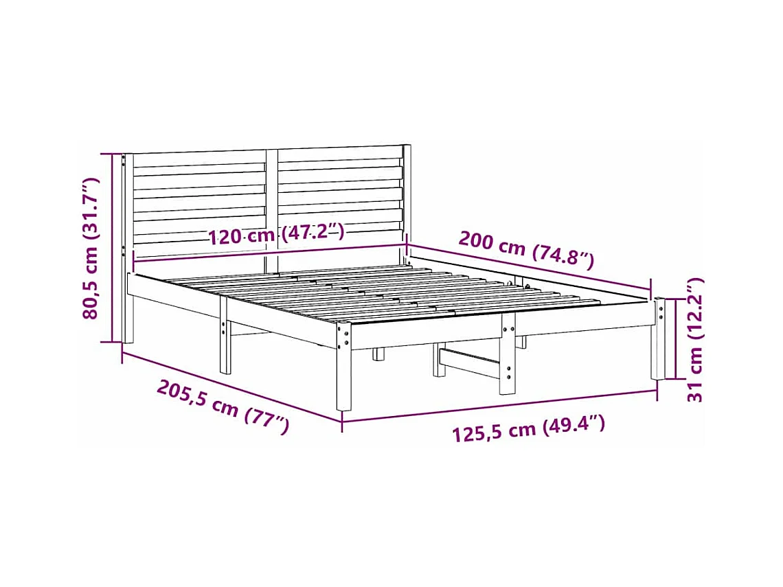 Cadre de lit Marron 120 x 200 cm Bois massif en pin