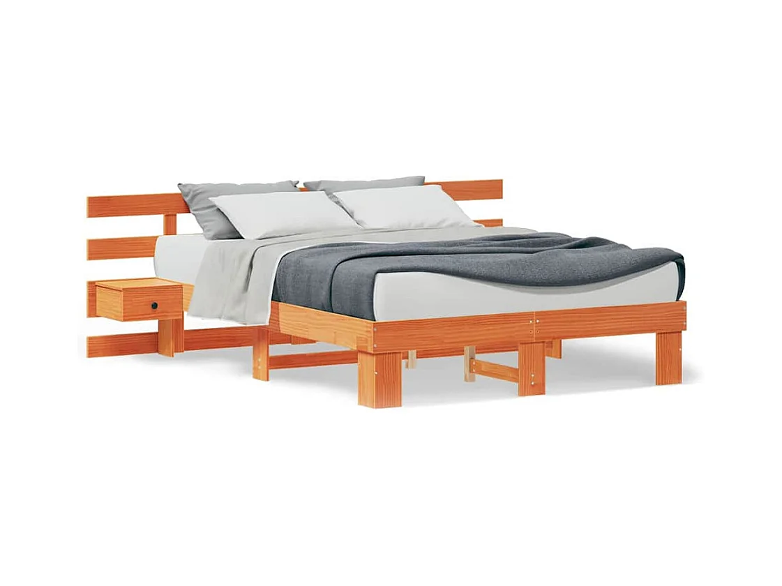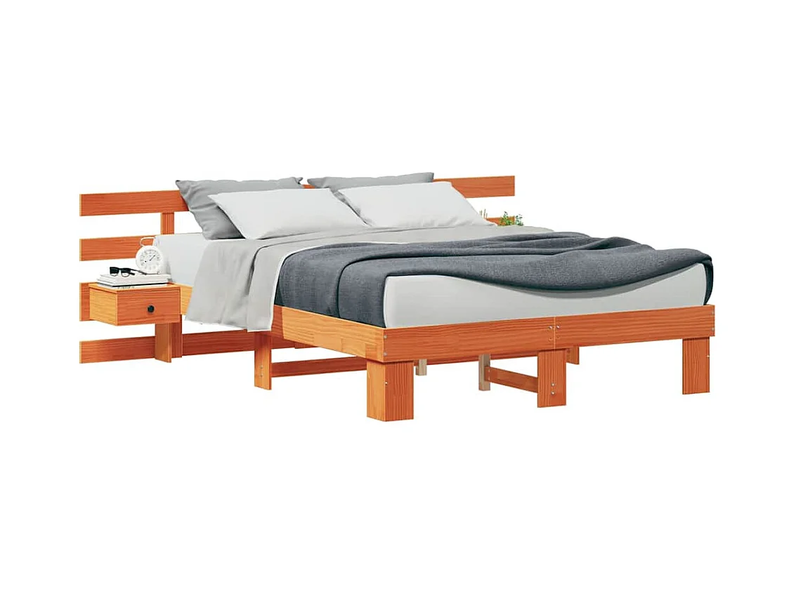 Cadre de lit avec tiroir Marron 150 x 200 cm Bois massif en pin