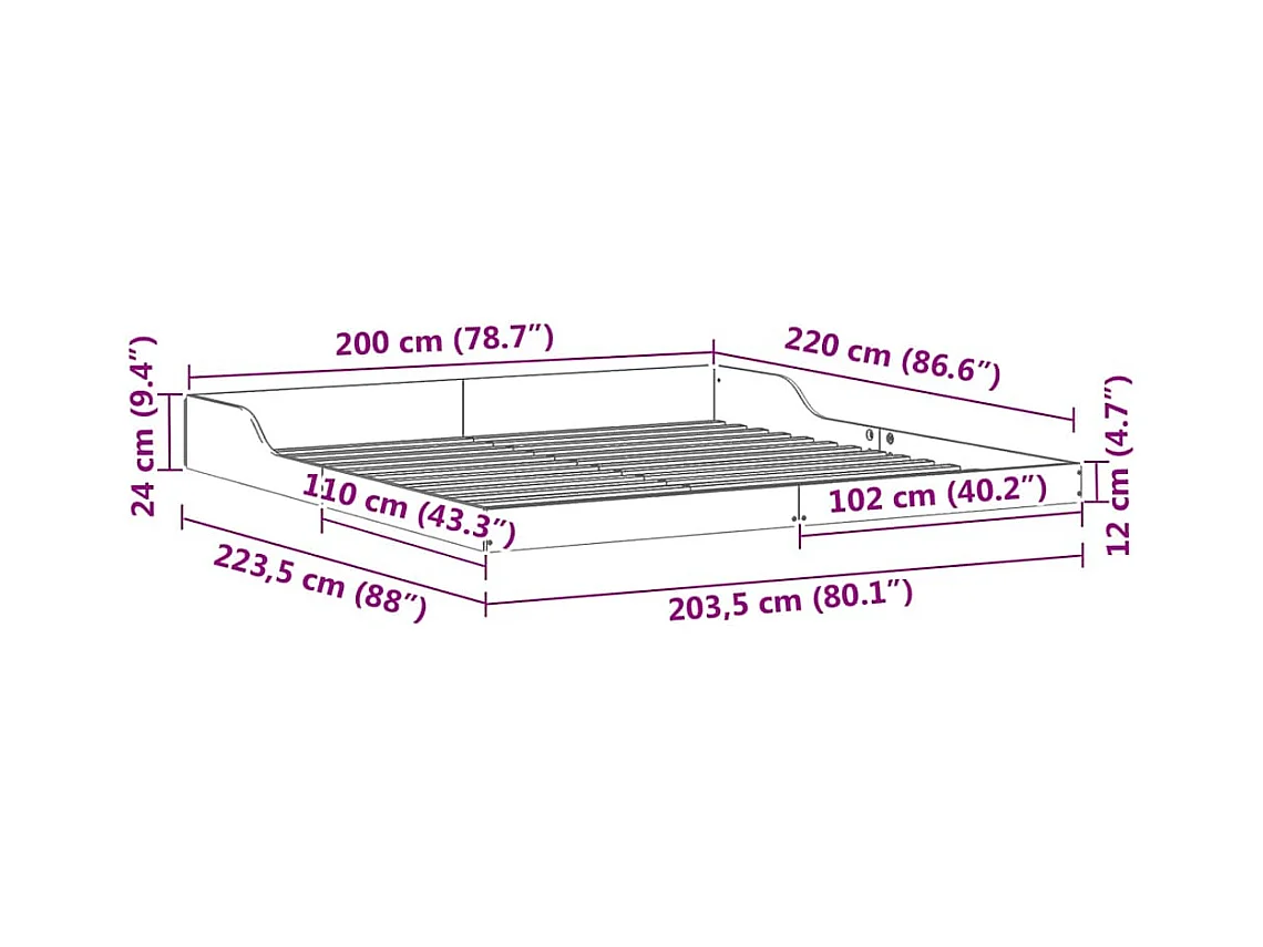 Cadre de lit extra long sans matelas 200x220 cm bois massif