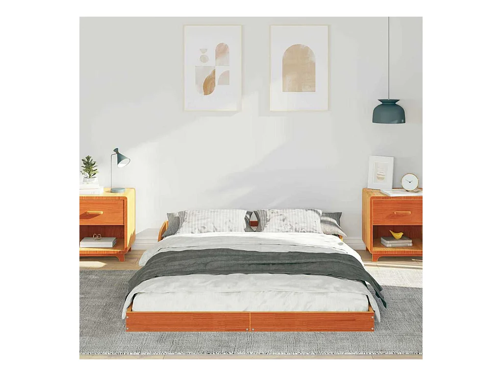 Cadre de lit sans matelas cire marron 120x200cm bois pin massif