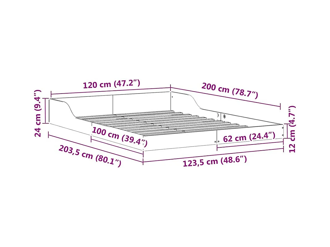 Cadre de lit Bois de pin massif 120x200 cm