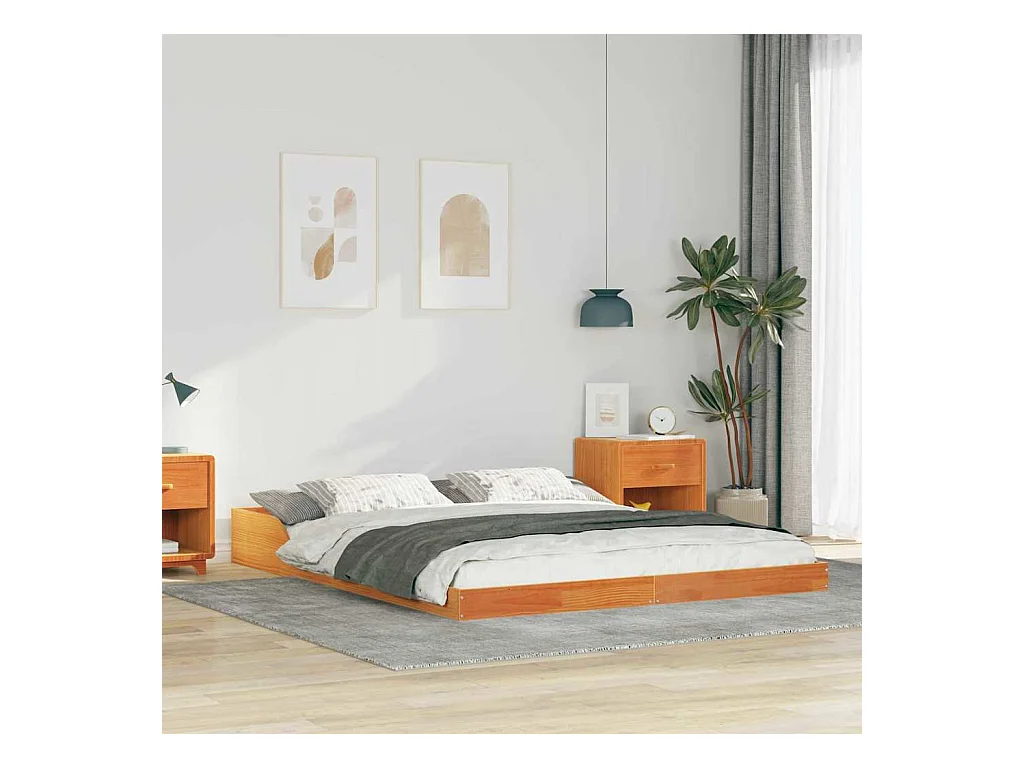 Cadre de lit Marron cire 140 x 200 cm Bois massif en pin