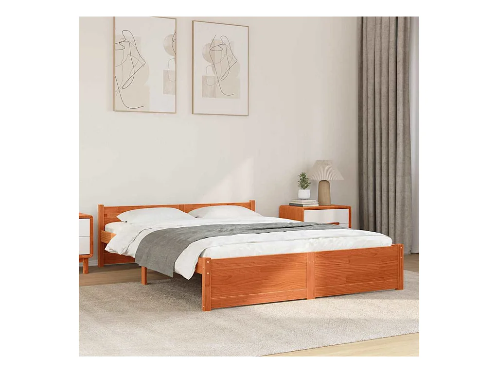 Cadre de lit Marron cire 160 x 200 cm Bois massif en pin