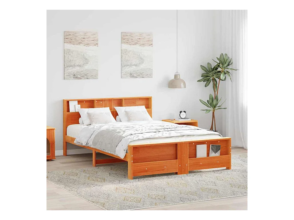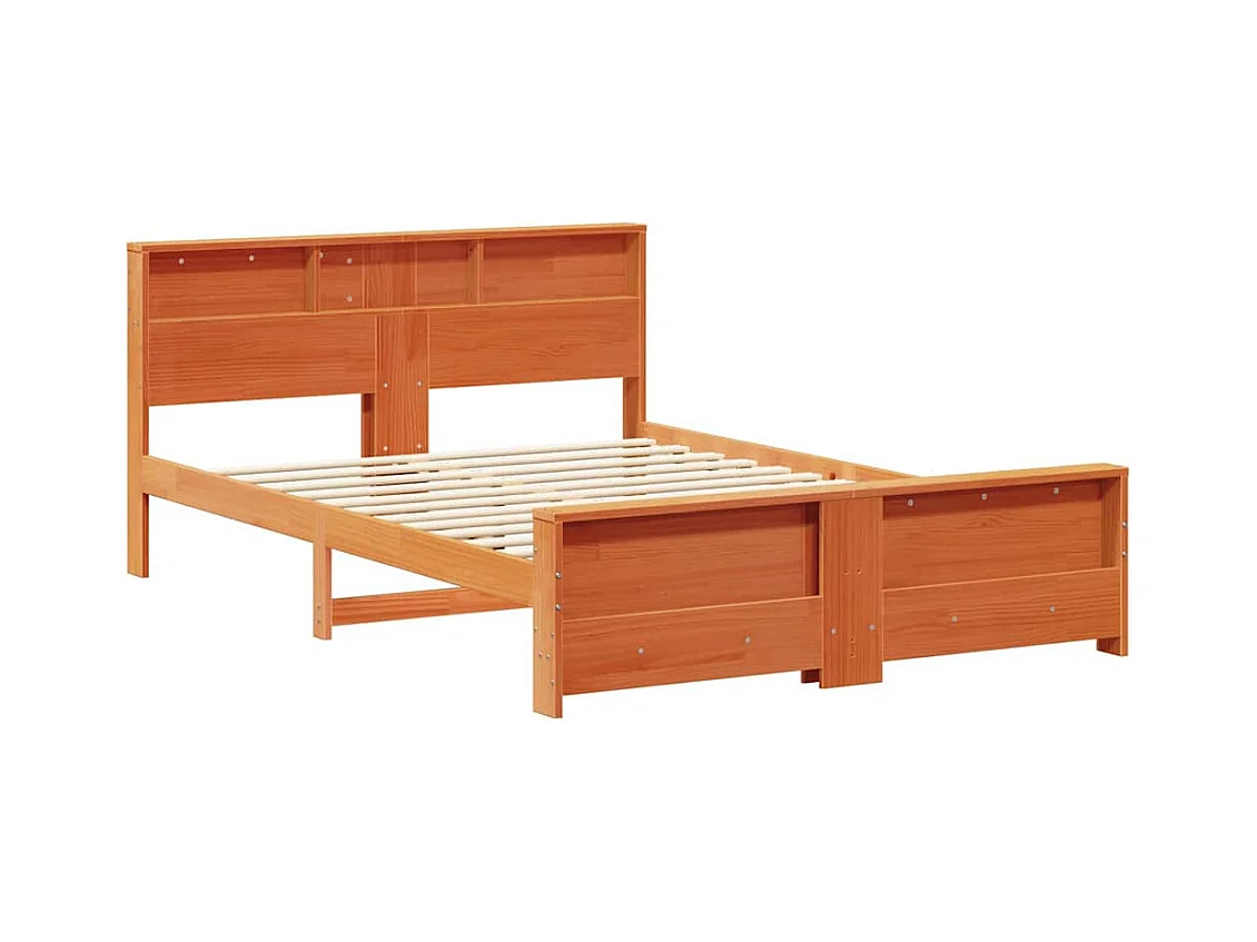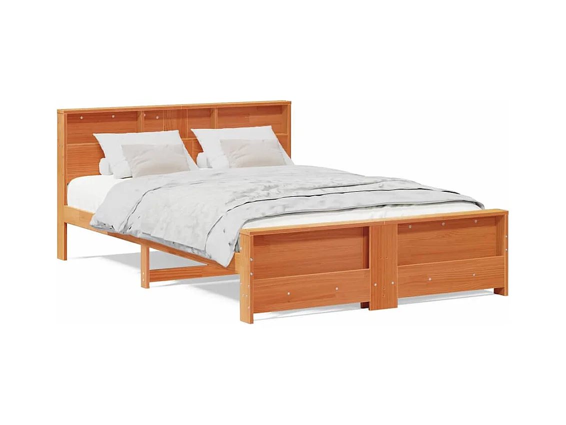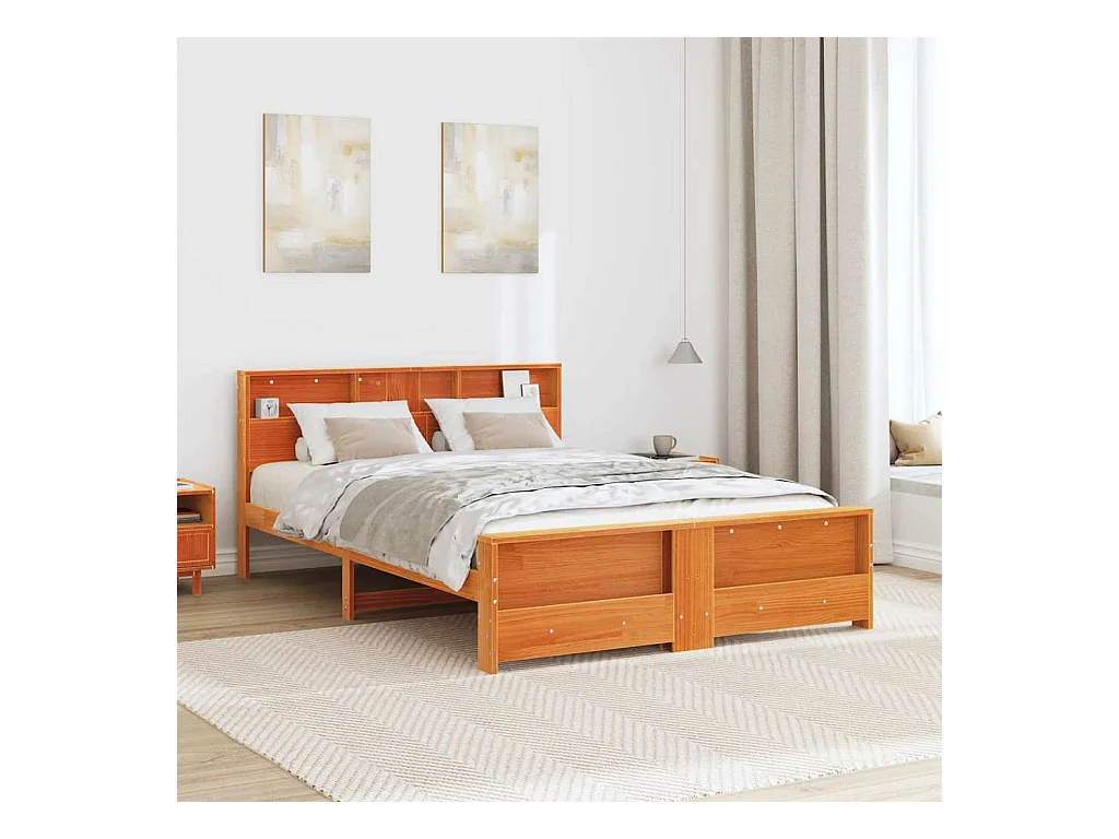 Lit bibliothèque sans matelas cire marron 140x200 cm pin massif