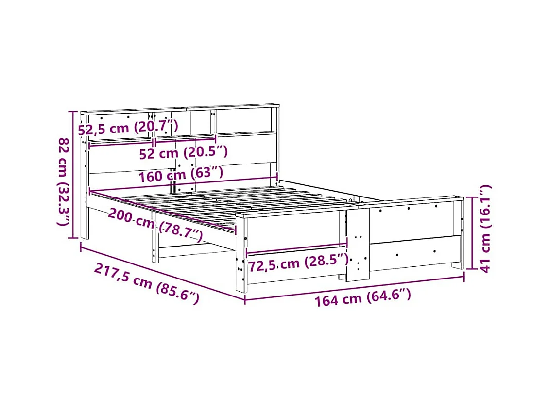 Lit bibliothèque sans matelas 160x200 cm bois massif de pin