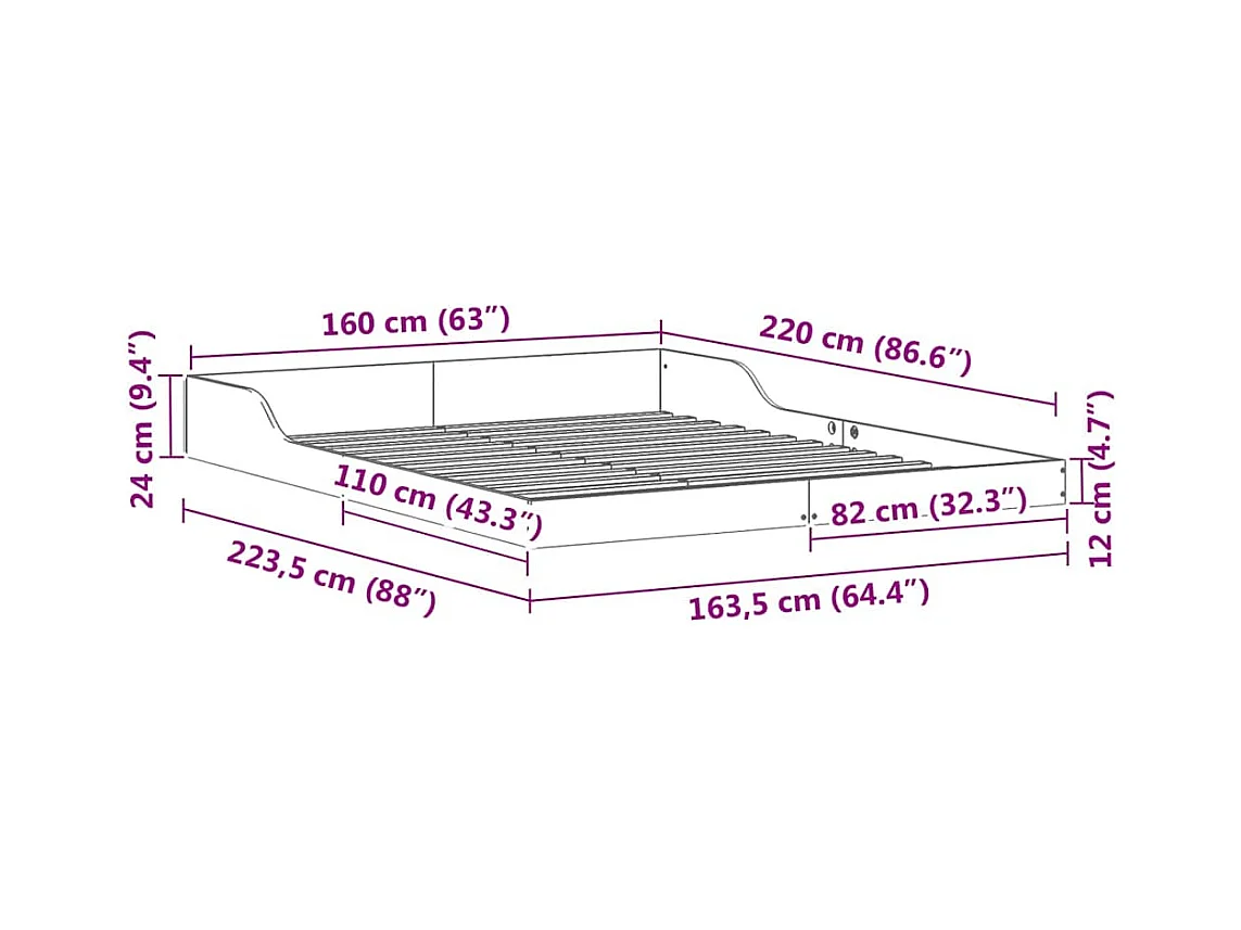 Cadre de lit sans matelas 160x200 cm bois massif de pin