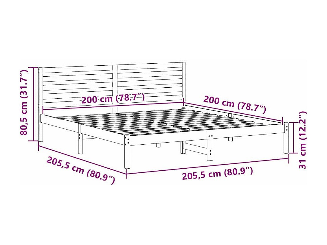Cadre de lit Bois massif 200x200 cm