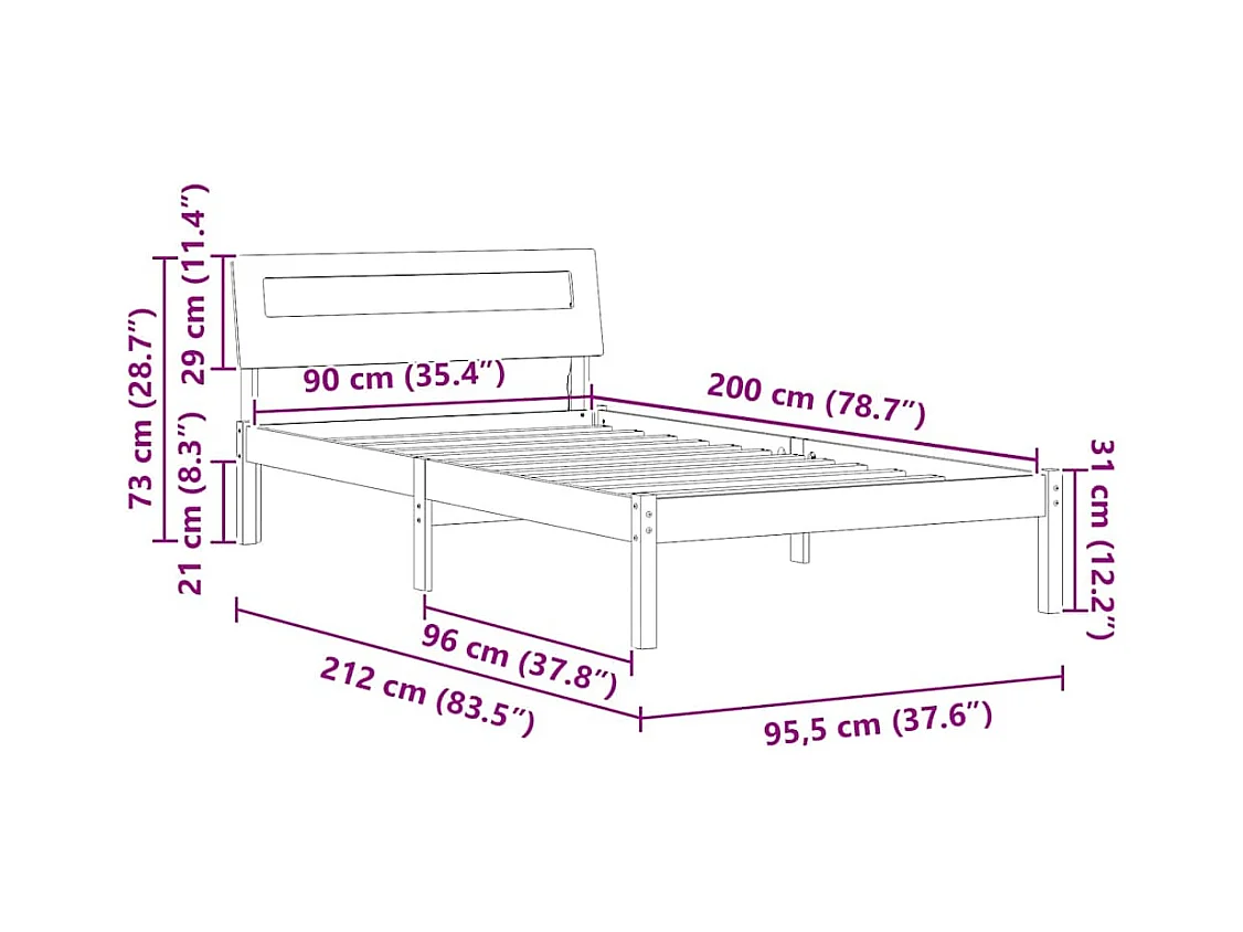 Cadre de lit sans matelas 90x200 cm bois de pin massif