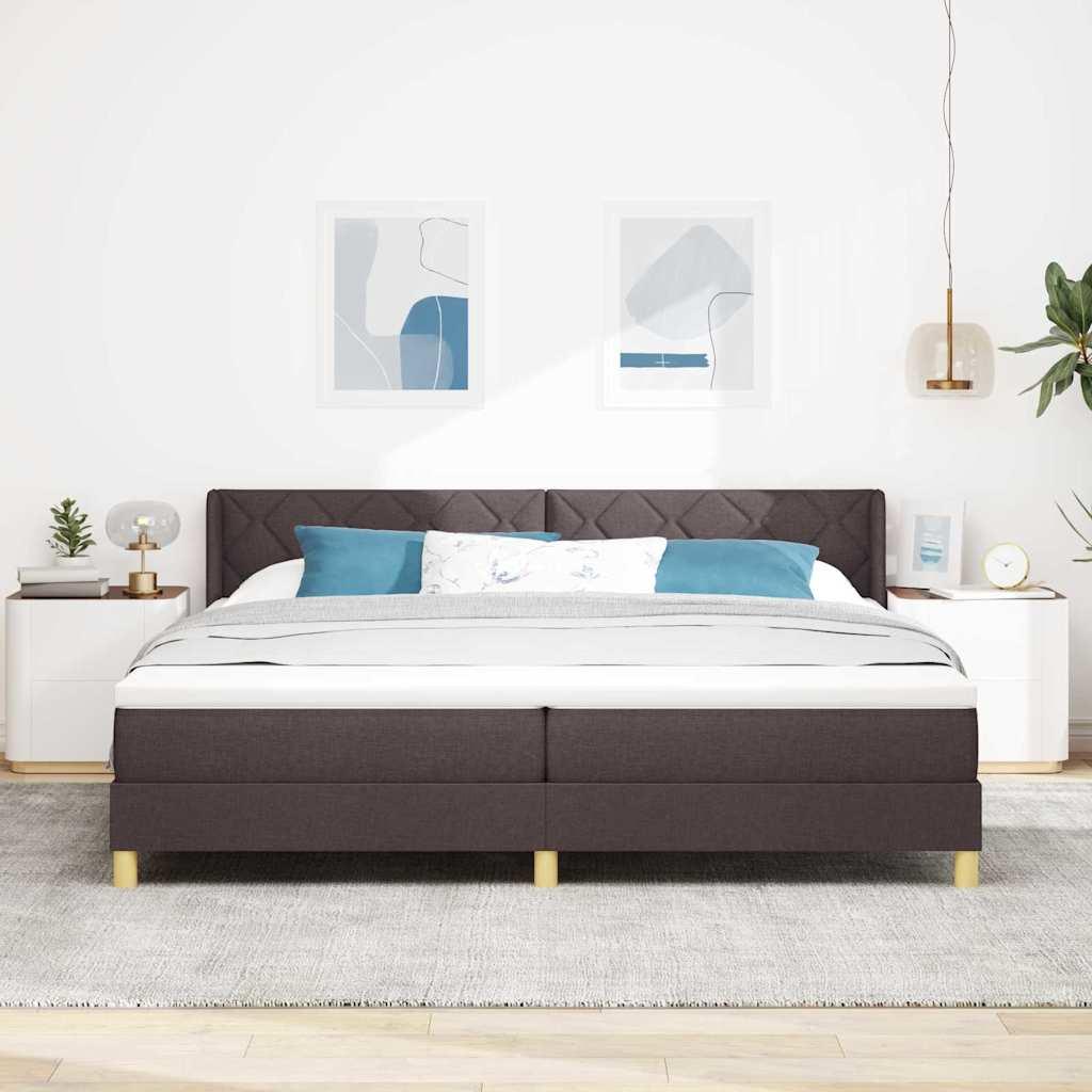 Cadre de lit avec matelas Marron foncé 200 x 200 cm tissu