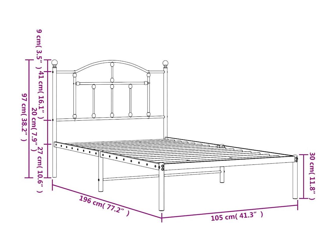 Lit simple métal + tête de lit noir 100x200 cm FR70990