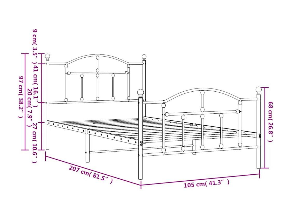 Cadre de lit métal sans matelas et pied de lit blanc 100x200 cm