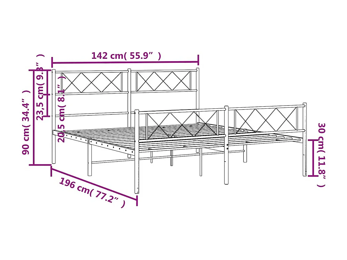 Cadre de lit métal avec tête de lit-pied de lit blanc 135x190