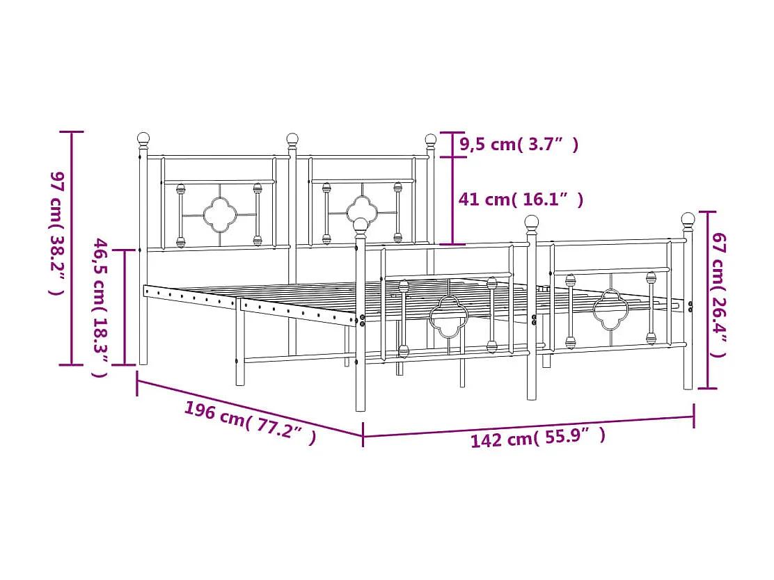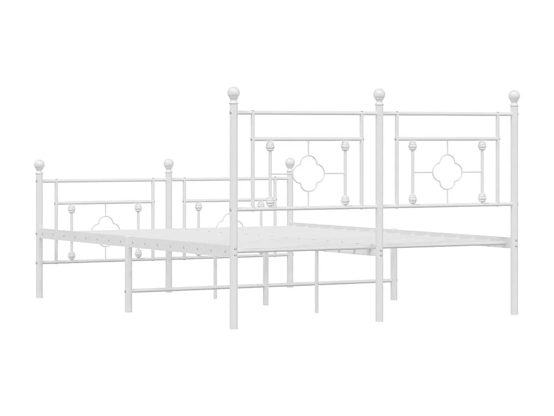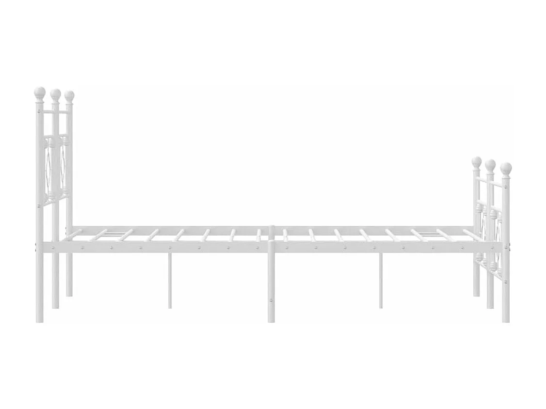 Cadre de lit métal sans matelas et pied de lit blanc 137x190 cm