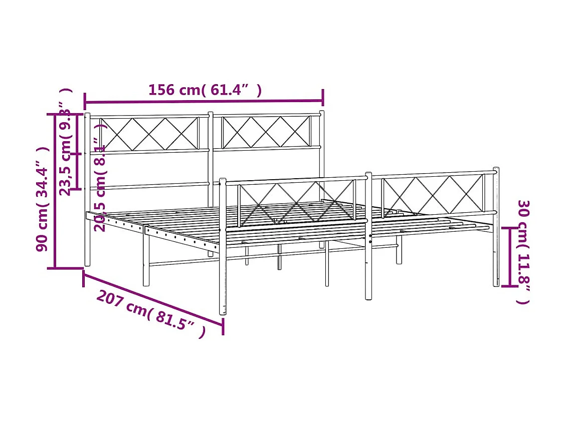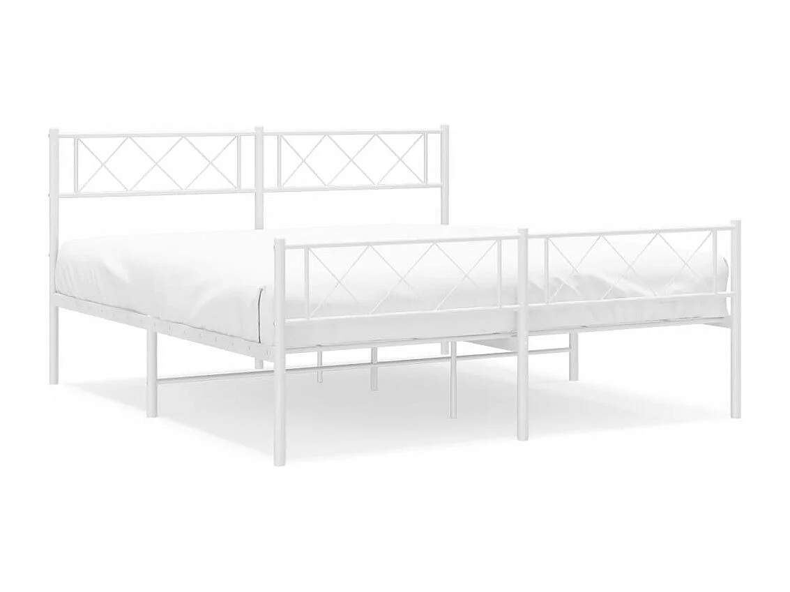 Cadre de lit métal avec tête de lit-pied de lit blanc 150x200