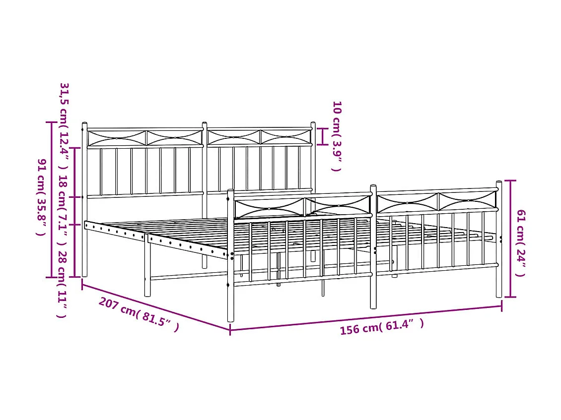 Cadre de lit métal avec tête de lit-pied de lit blanc 150x200