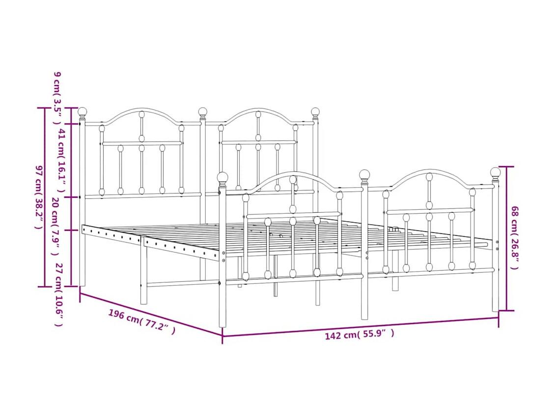 Cadre de lit métal sans matelas avec pied de lit noir 135x190cm