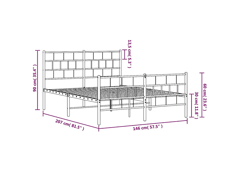 Cadre de lit métal sans matelas avec pied de lit noir 140x200cm