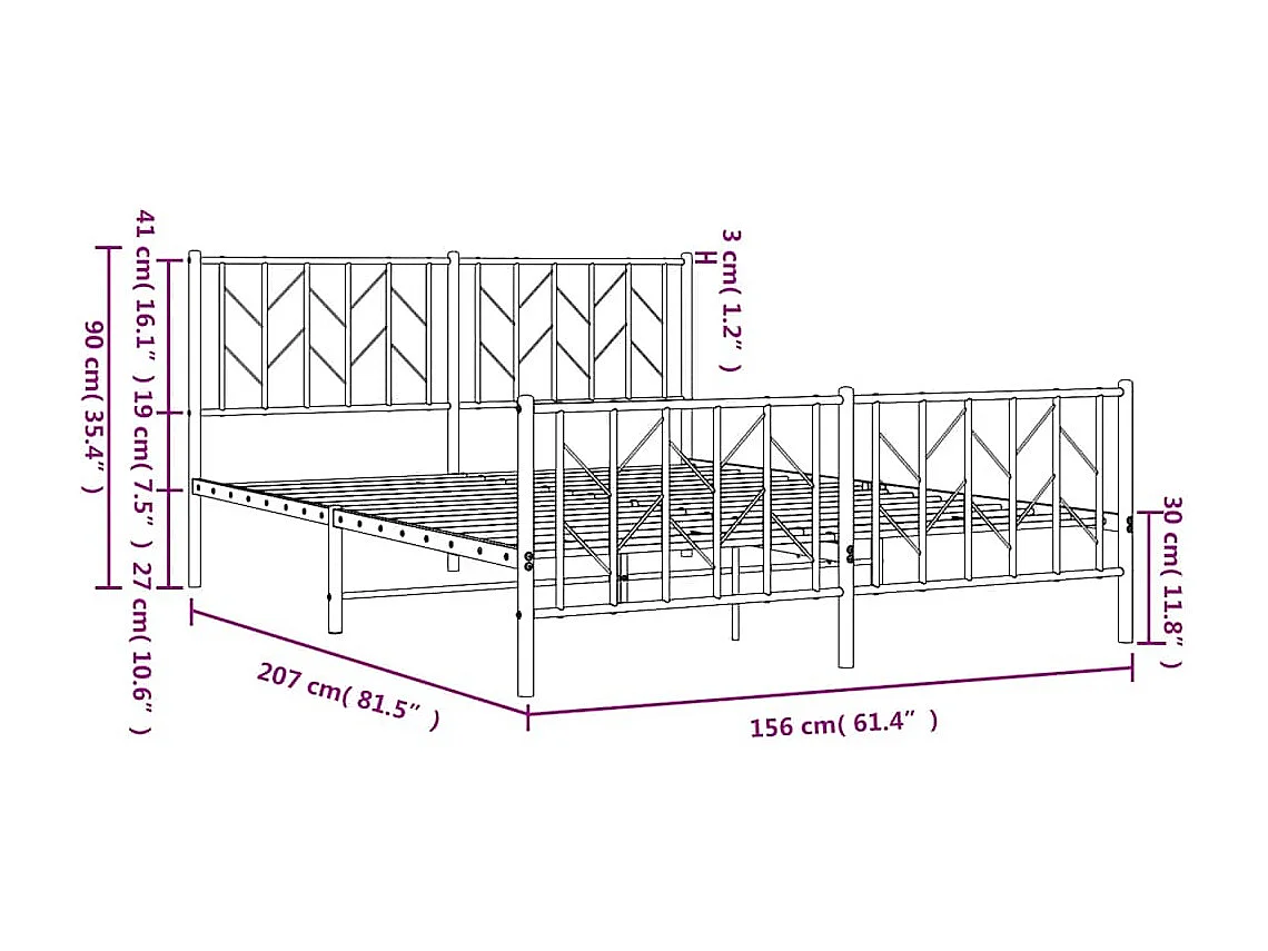 Cadre de lit métal sans matelas avec pied de lit noir 150x200cm
