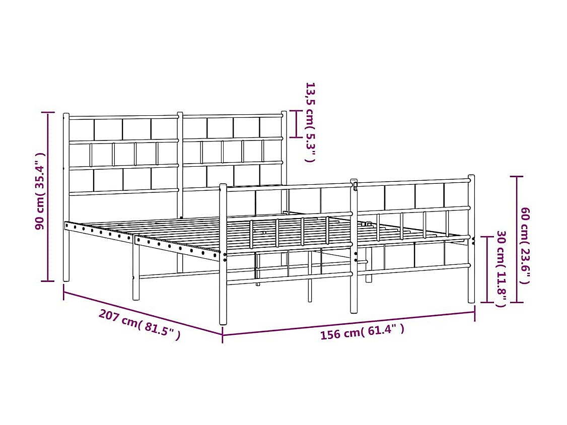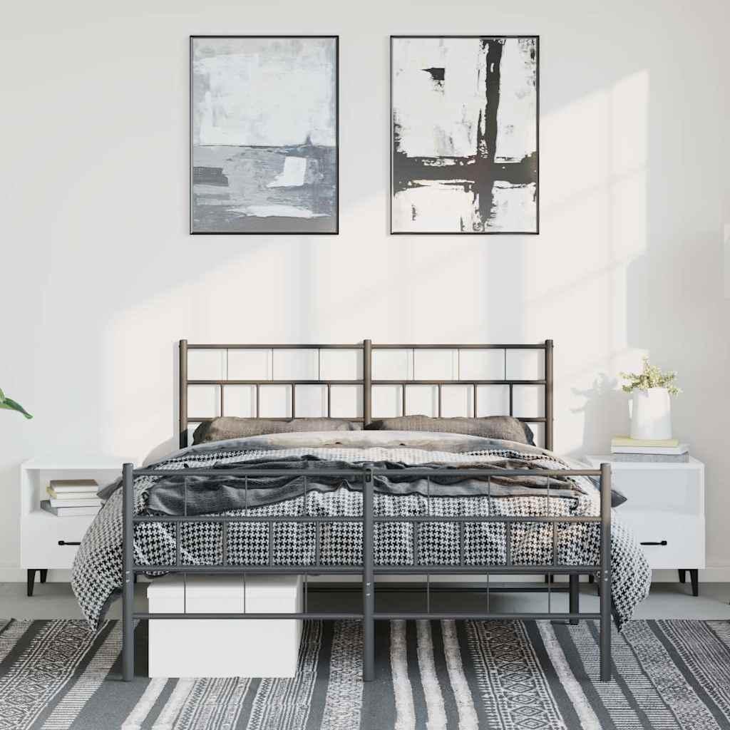 Lit double métal + tête de lit/pied de lit noir 150x200 cm FR17819