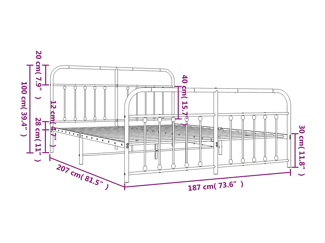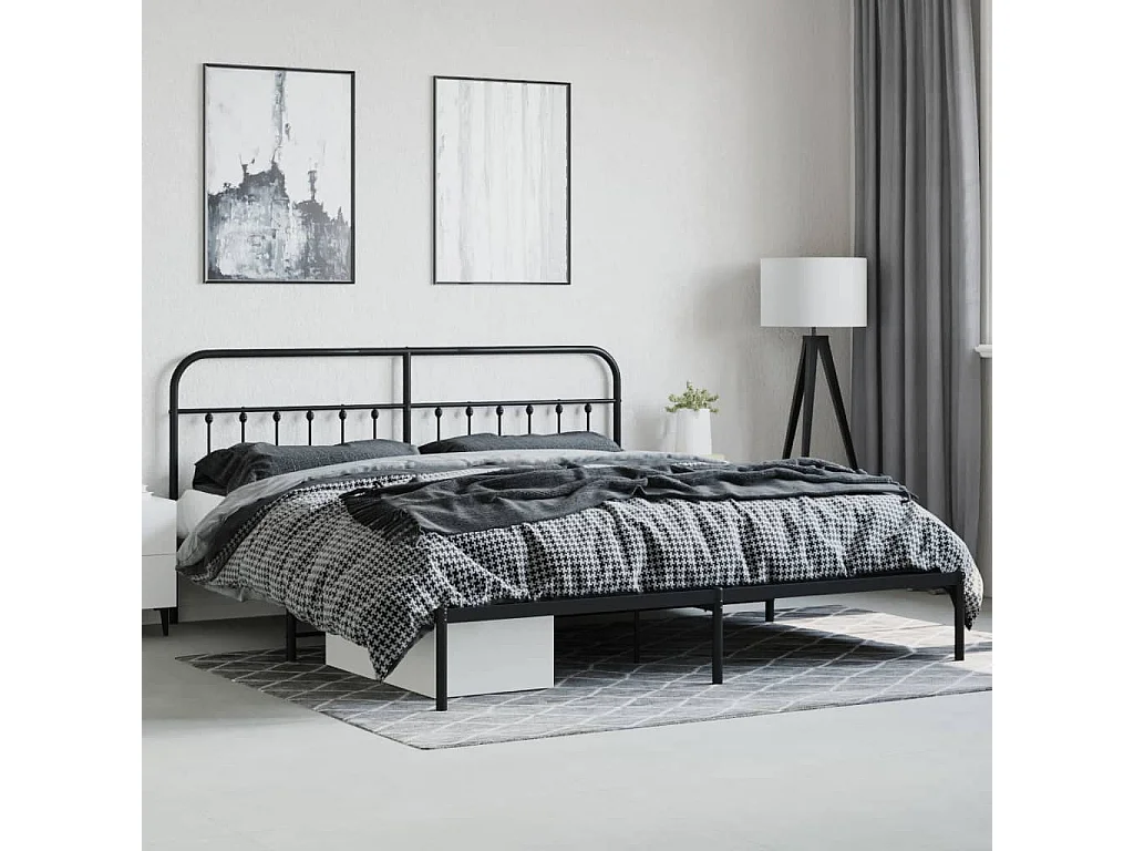 Cadre de lit métal avec tête de lit-pied de lit noir 180x200