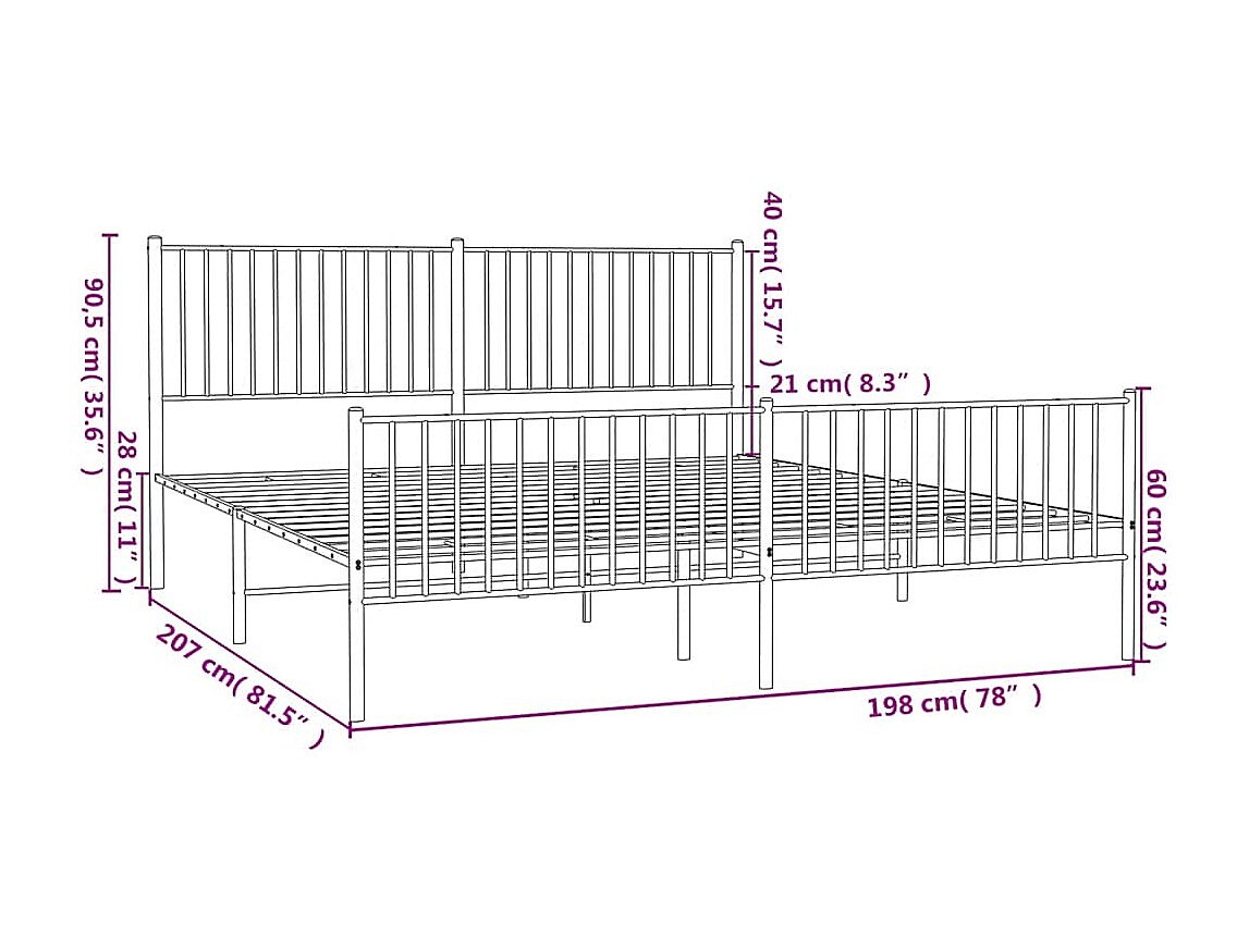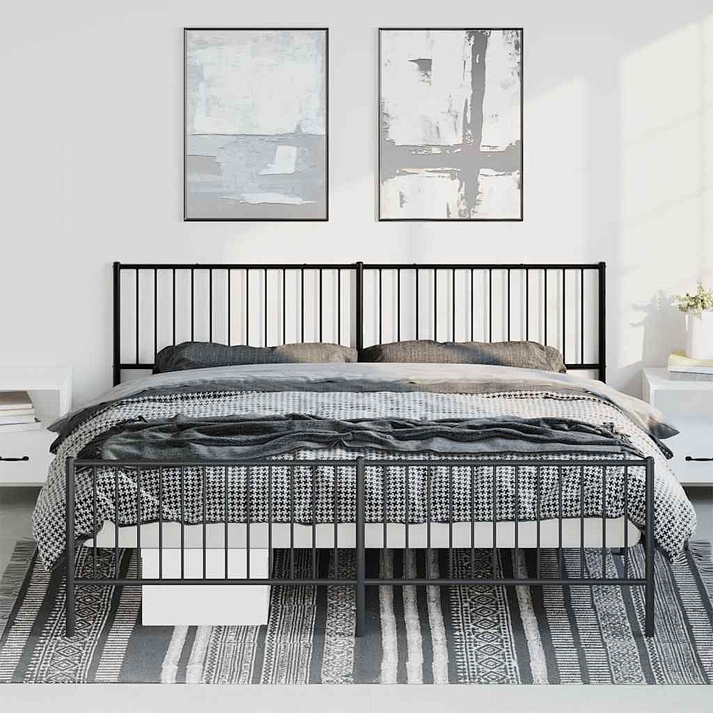 Cadre de lit métal sans matelas avec pied de lit noir 193x203cm