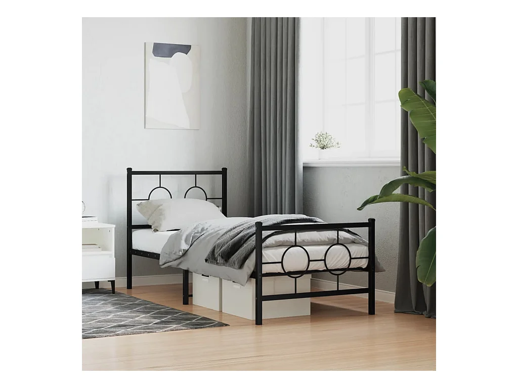 Cadre de lit métal sans matelas avec pied de lit noir 80x200 cm