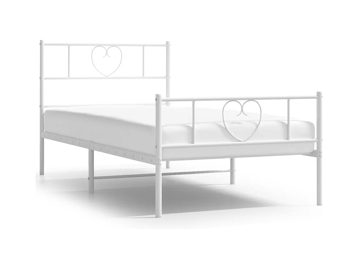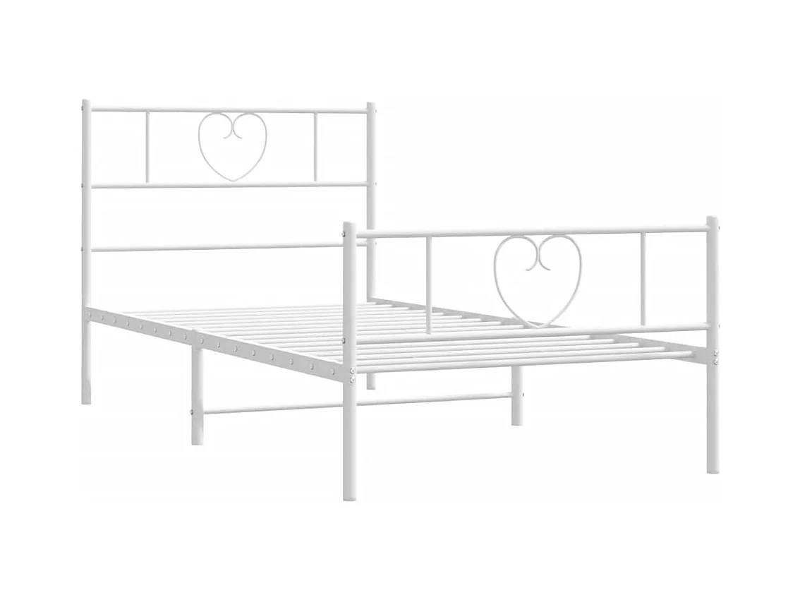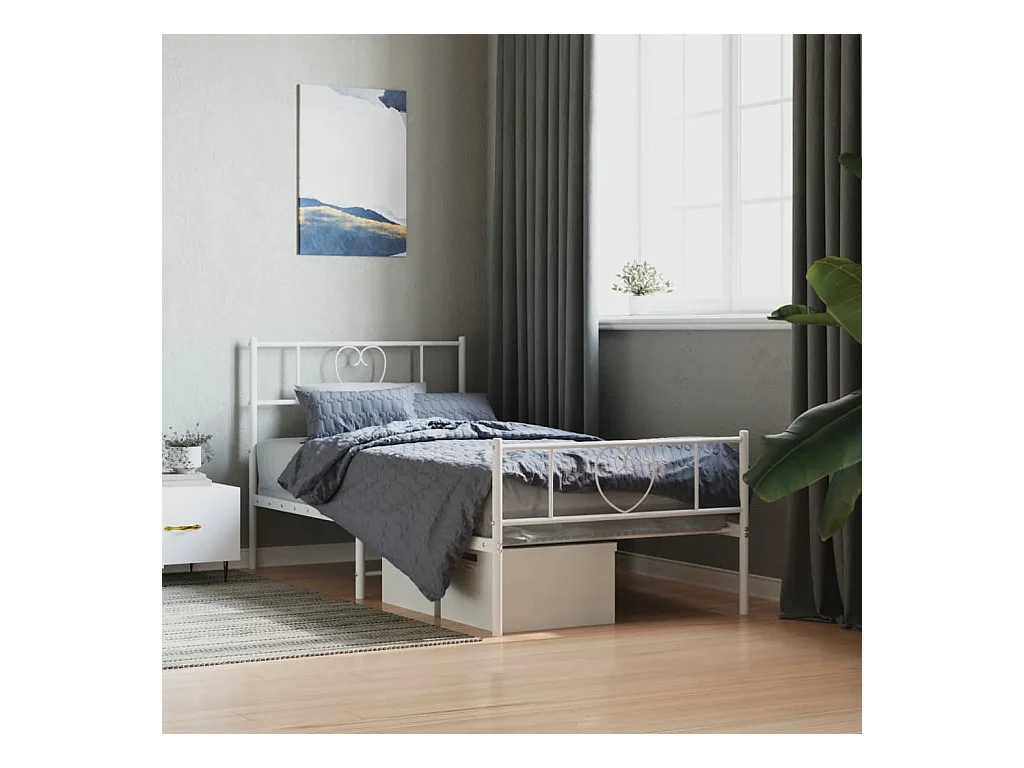 Lit simple métal + tête de lit/pied de lit blanc 90x200 cm FR41444