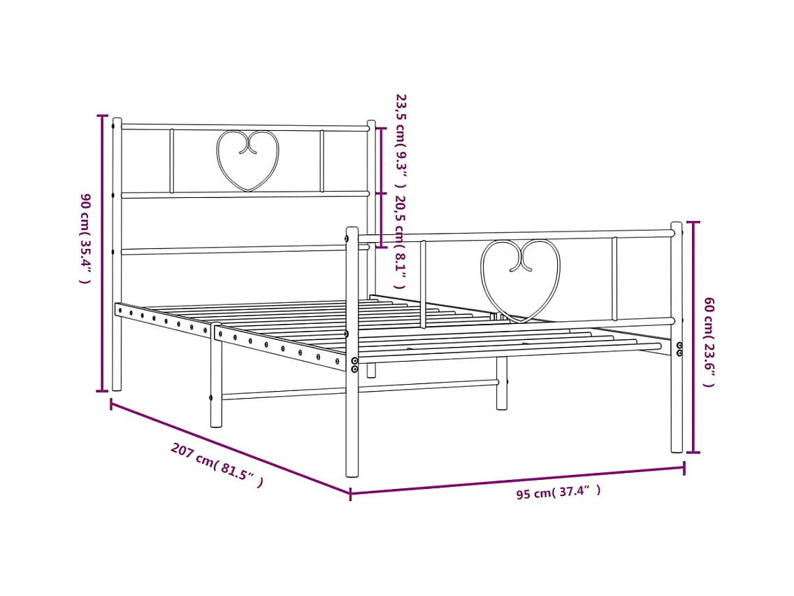 Lit-90x200 cm métal + tête de lit/pied de lit blanc HOQW59067