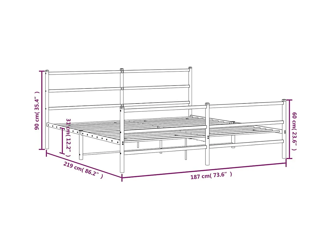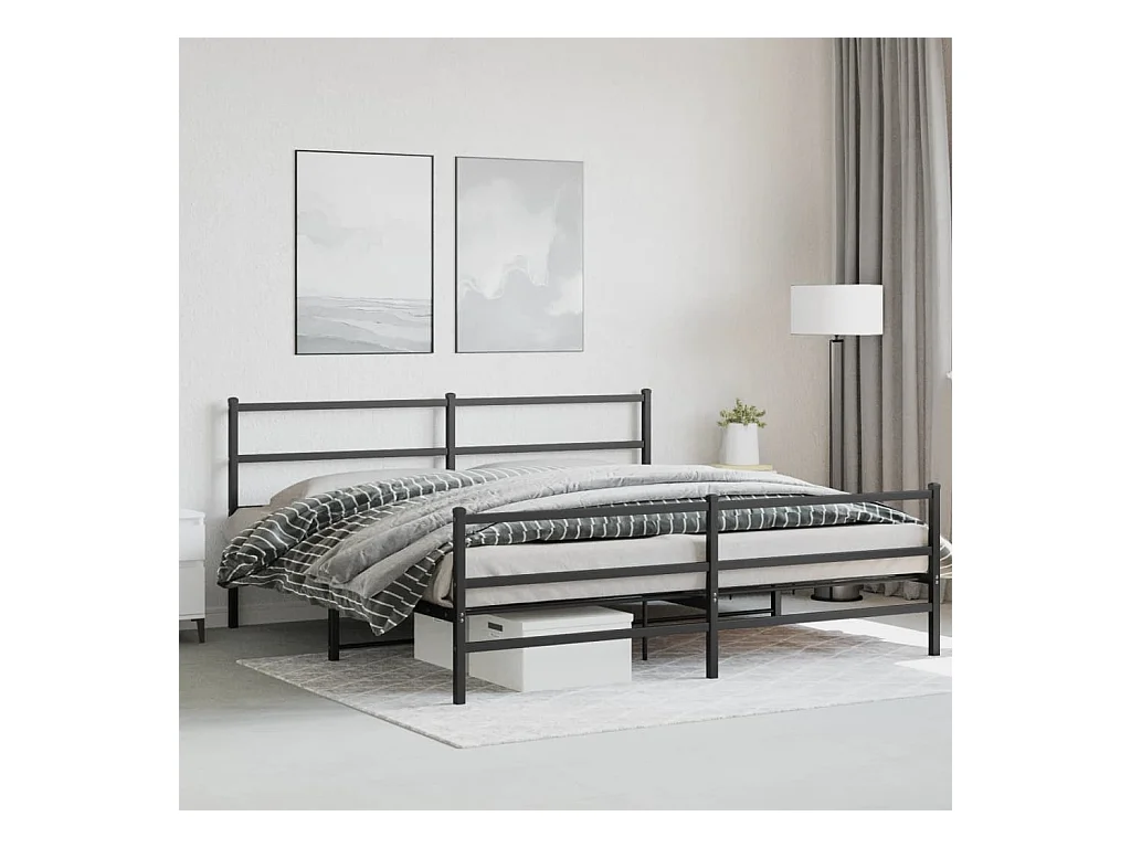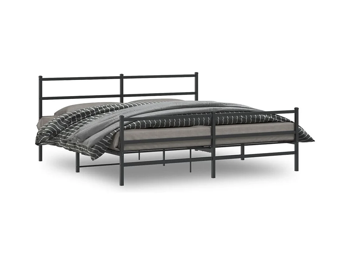 Cadre de lit métal sans matelas avec pied de lit noir 183x213cm