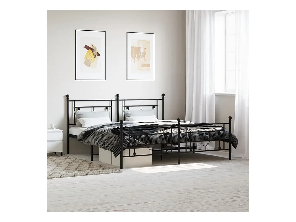Cadre de lit métal sans matelas avec tête de lit noir 183x213cm