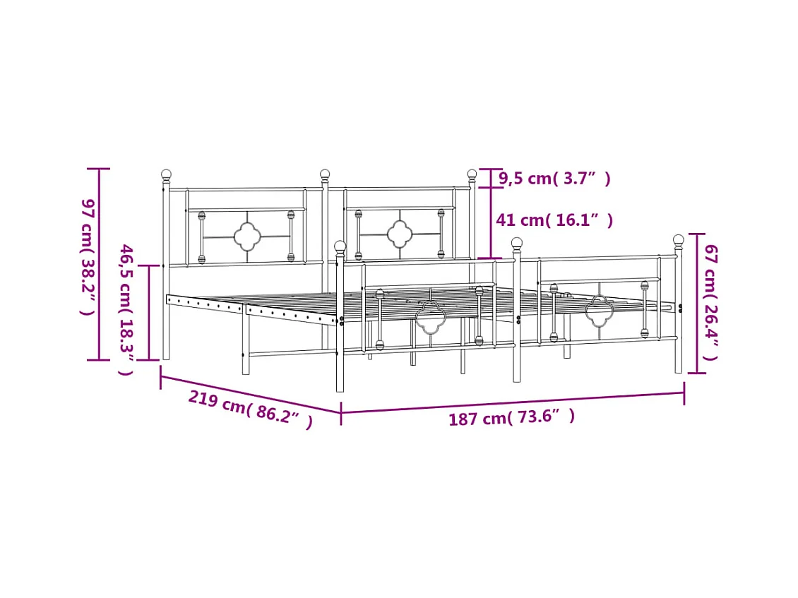 Cadre de lit métal sans matelas avec pied de lit noir 183x213cm