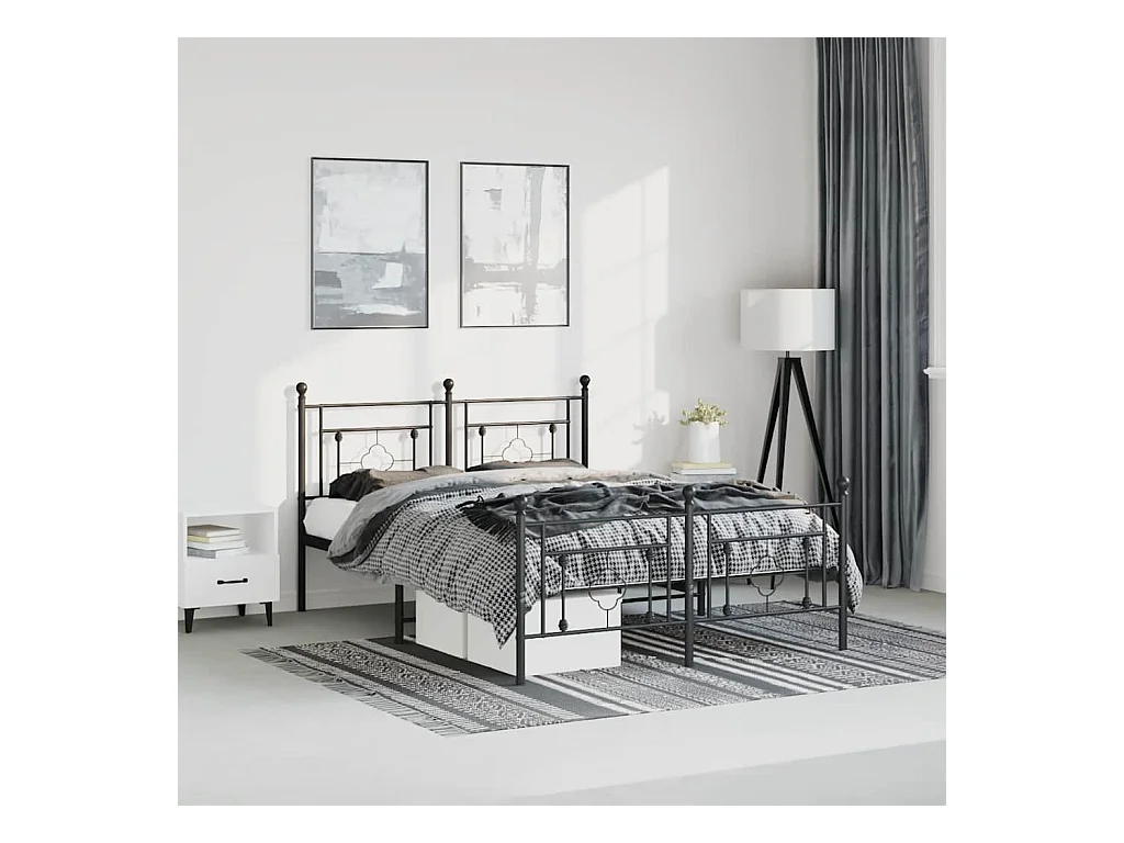 Cadre de lit métal sans matelas avec pied de lit noir 183x213cm
