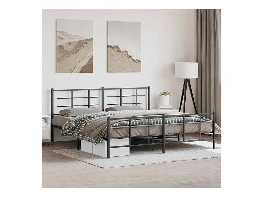 Cadre de lit métal sans matelas avec tête de lit noir 183x213cm