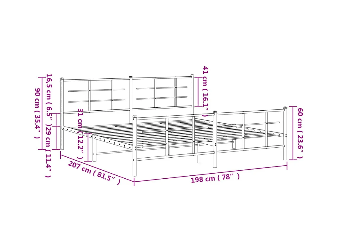 Cadre de lit métal sans matelas avec pied de lit noir 193x203cm