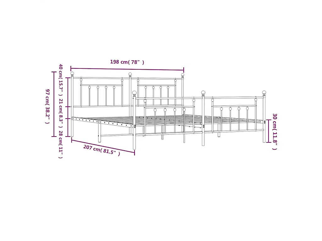 Cadre de lit métal sans matelas avec pied de lit noir 193x203cm