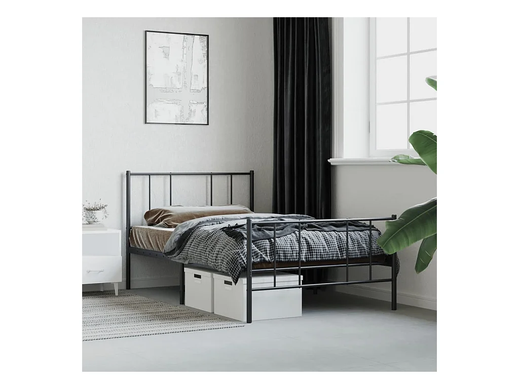 Lit simple métal + tête de lit/pied de lit noir 90x200 cm FR35021
