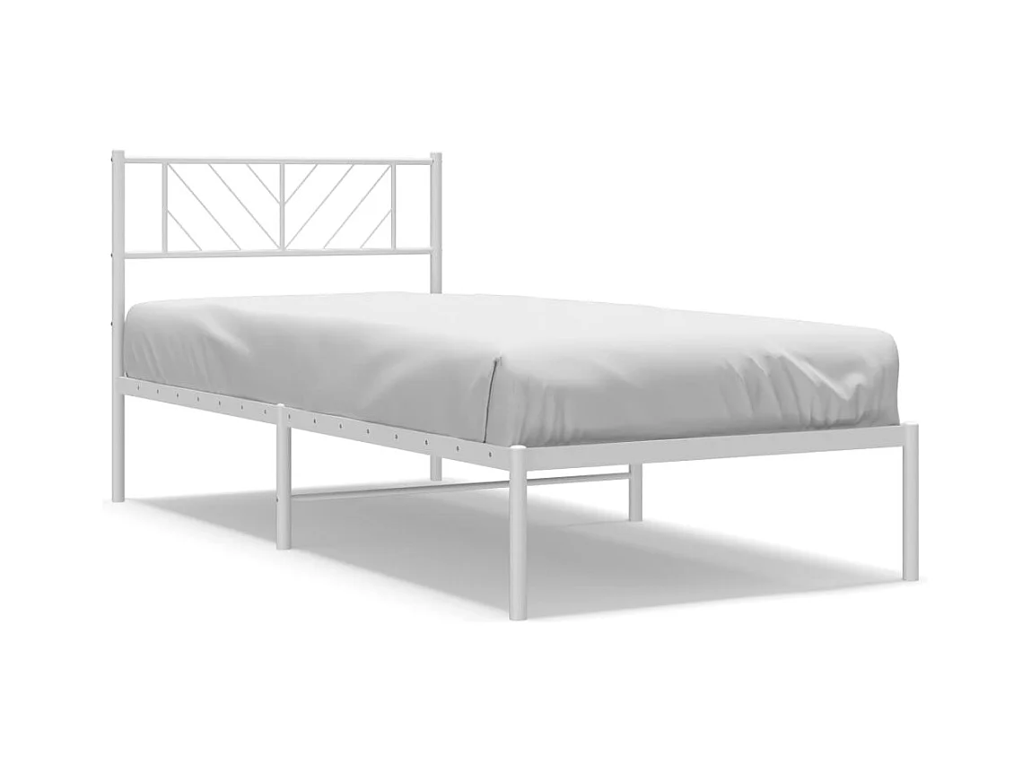 Cadre de lit métal sans matelas avec tête de lit blanc 75x190cm