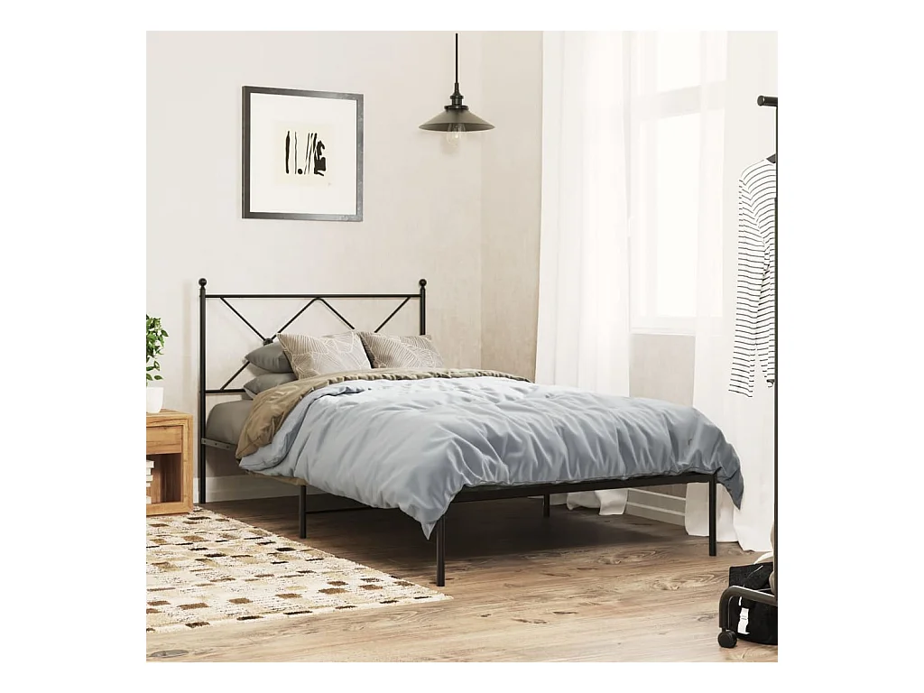 Cadre de lit métal sans matelas avec tête de lit noir 107x203cm