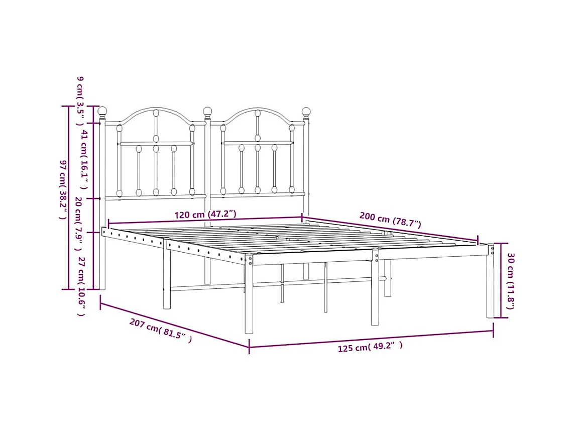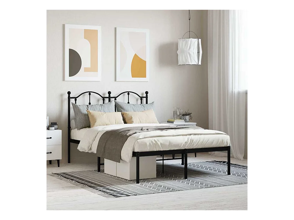Cadre de lit métal sans matelas avec tête de lit noir 120x200cm