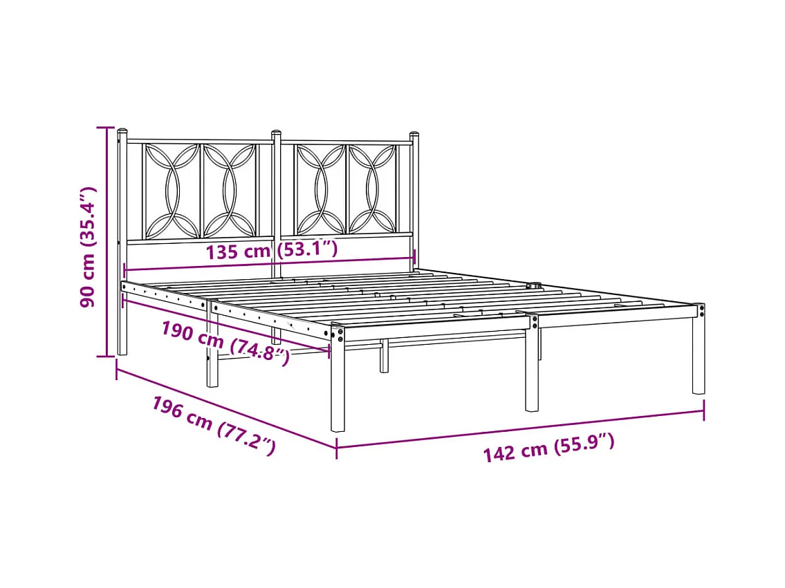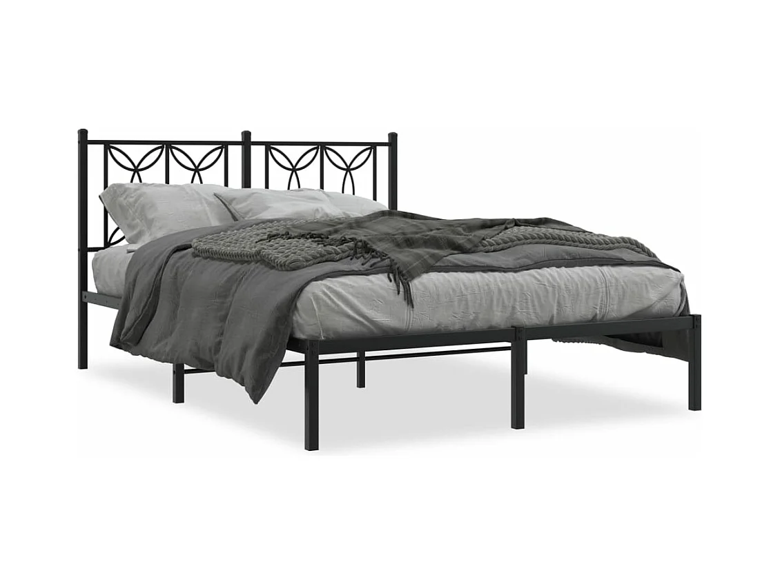 Cadre de lit métal sans matelas avec tête de lit noir 135x190cm