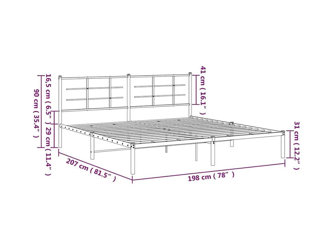 Cadre de lit métal sans matelas avec tête de lit noir 193x203cm