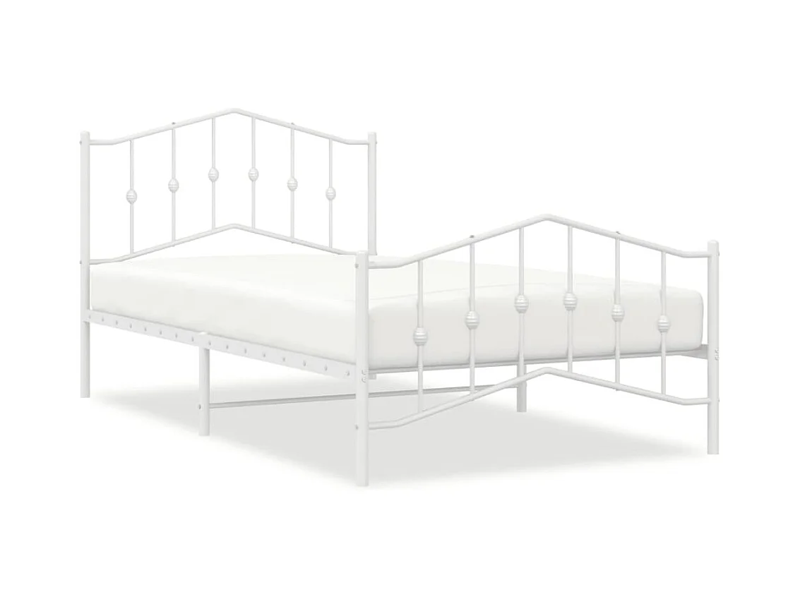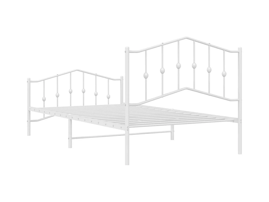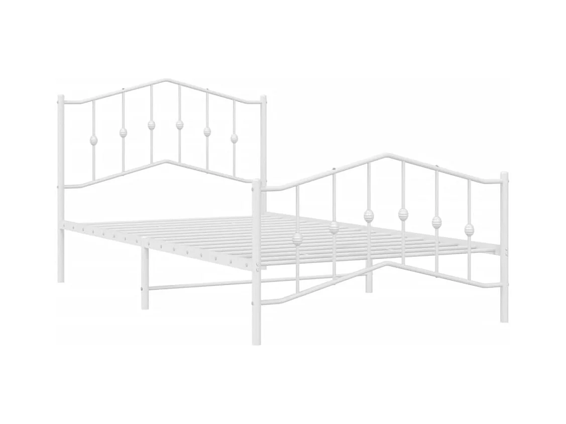 Cadre de lit métal sans matelas et pied de lit blanc 107x203 cm